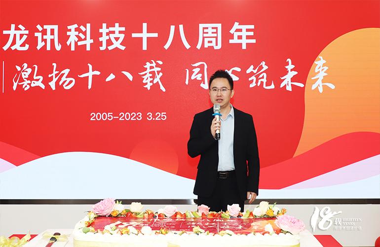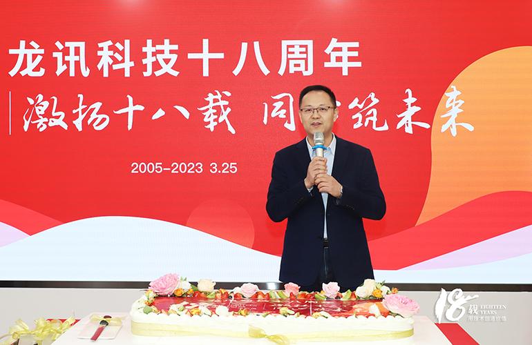激揚十八載,同心筑未來。2023年3月25日,是公司成立十八周年的日子。一場溫馨而隆重的“生日會”,3月24日提前在總部展廳舉行,龍訊的家人們一起相聚慶祝。